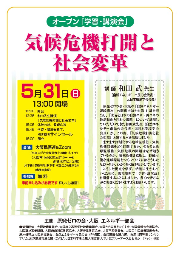 原発ゼロの会・大阪 会員・関係者の皆さまへ